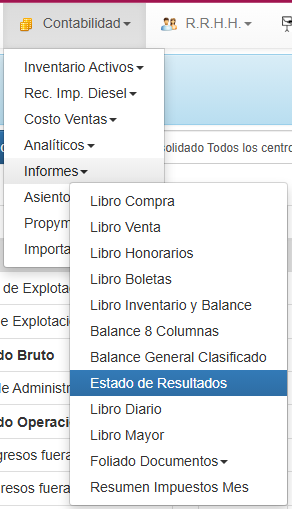 Para efectos del sistema usted puede encontrar un proceso de carga, que inicialmente aparece en blanco, para ello debe ir al menu contabilidad->Informes->estado de resultados