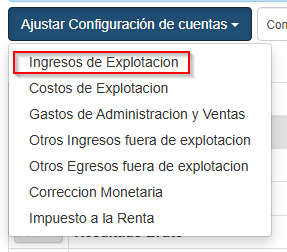 presiona el botón Ajustar configuración de cuentas y luego Ingresos de Explotación