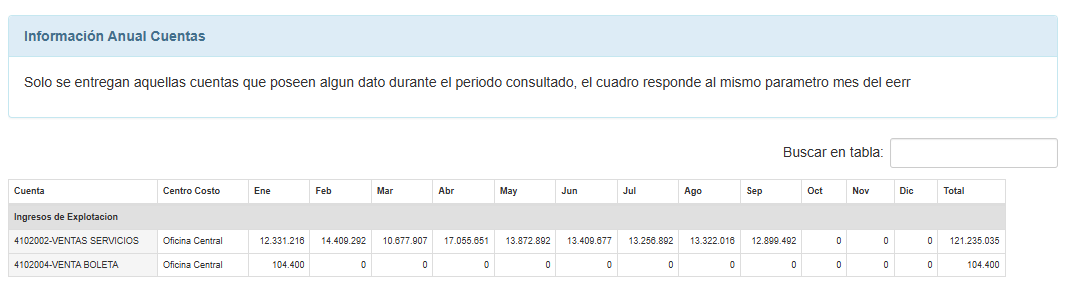 Como indica el aviso, solo se muestran aquellas cuentas que tienen movimiento en el periodo indicado.