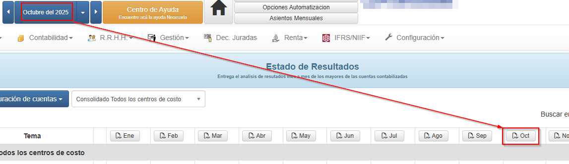 El sistema entrega el eerr dependiendo del mes y año que tenga seleccionado,