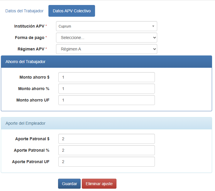Luego presione la opción Datos APV Colectivo y complete los datos solicitados