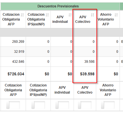 Para este caso, el monto de ahorro en $, en % y en UF se monetizan en pesos al ultimo dia del mes en curso y se lleva a un valor entero que para el aporte del trabajador estará en el libro de remuneraciones en la columna APV Colectivo, para este ejemplo, $1 + 1% imponible + 1Uf suma un total de $39598.