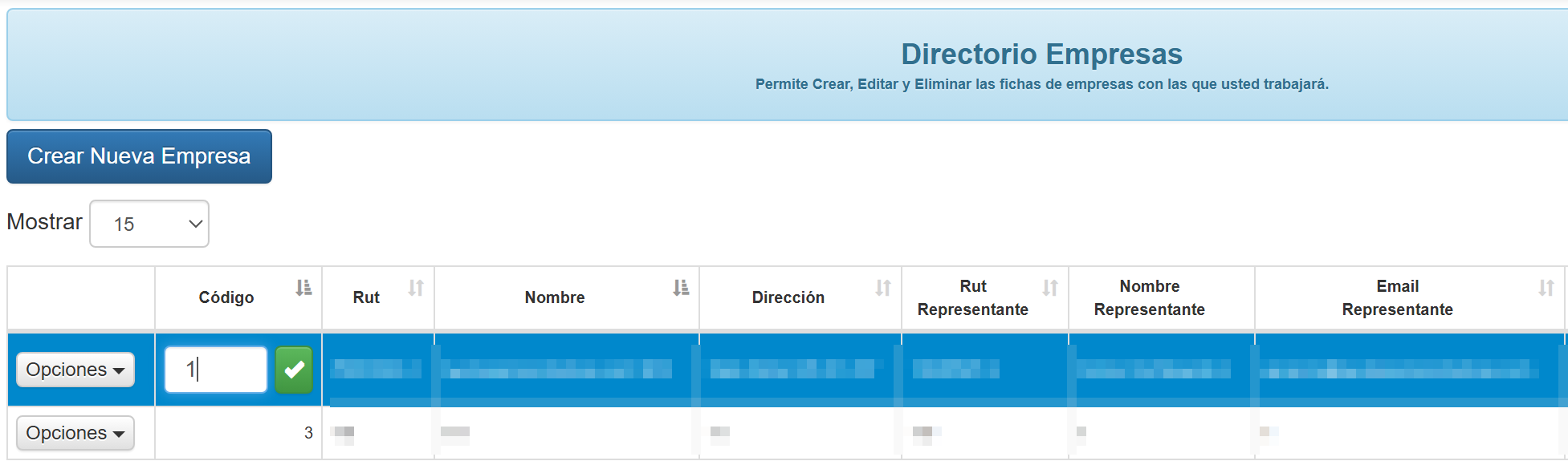 Esto se hace en el directorio de empresas haciendo clic en la celda codigo de la empresa correspondiente