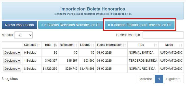 Importación Boletas de Honorarios para Terceros