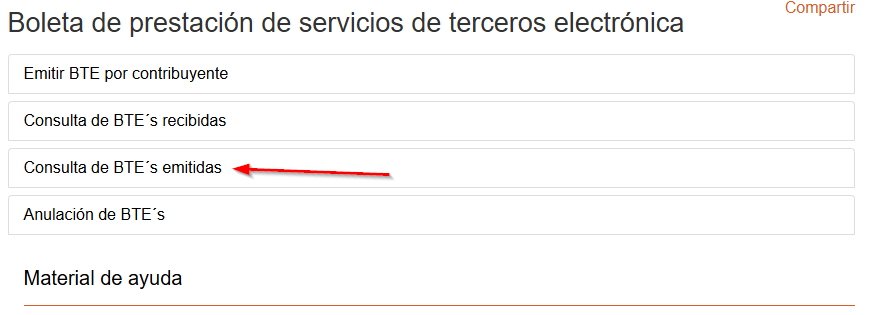 Una vez allí el sistema lo dirigirá al menú especifico de las boletas de tercero recibidas o emitidas