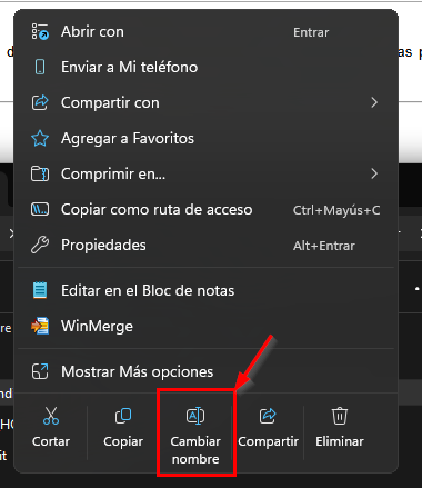 una vez abierta la carpeta debe cambiar su nombre, haciendo click con el botón derecho de su mouse y luego usar la opción cambiar nombre.