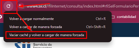 en ese punto presionar la opción "Vaciar la caché y volver a cargar de manera forzada"