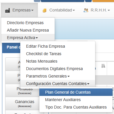 este plan de cuentas se presenta desde este menu