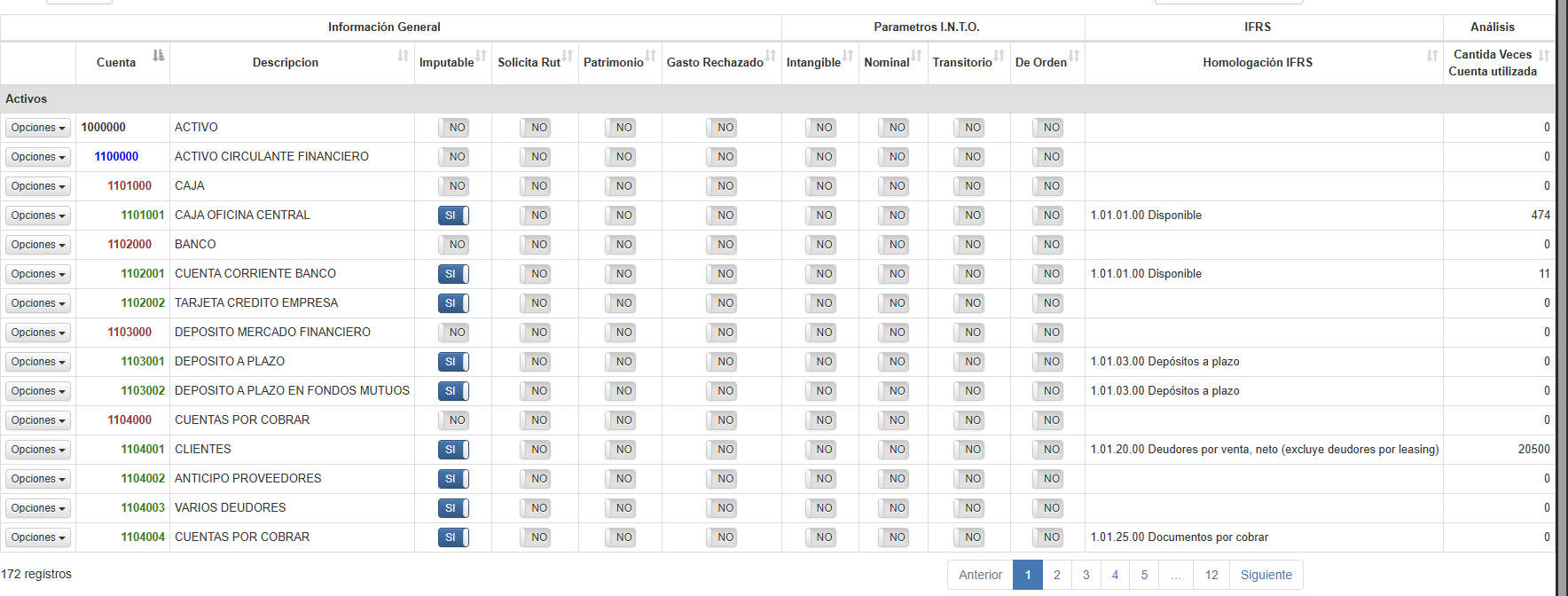 Imputable : es un bandera que actua como filtro, permitiendo definir que cuentas recibirán numeros en las diferentes operaciones.