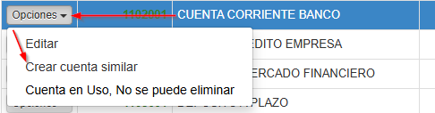 Para crear una cuenta el sistema se aborda de tipo copia, es decir buscar una cuenta que se acomode en grupo o características a la que deseo y presiono la opción "crear cuenta similar"